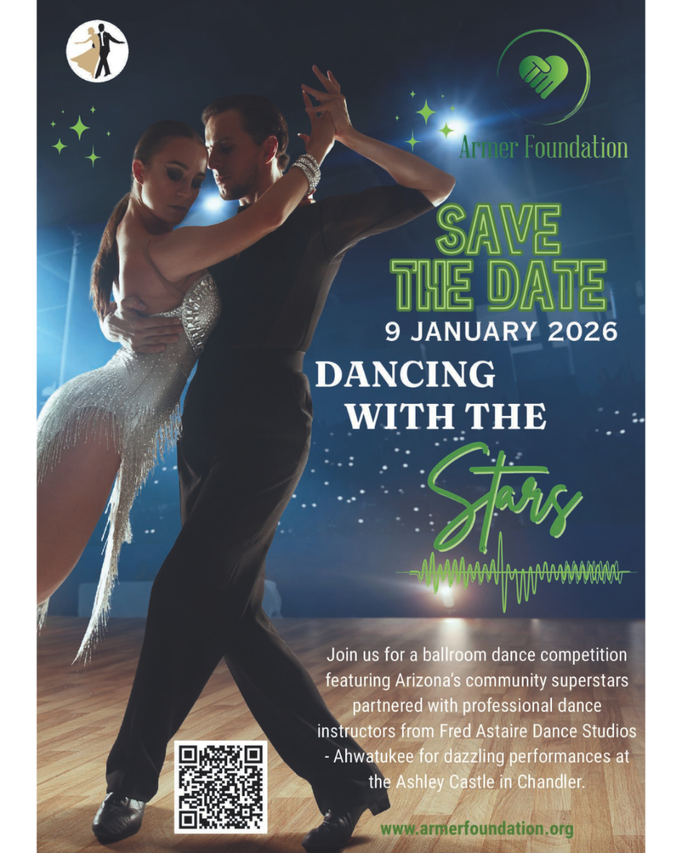 Step into a world of elegance and compassion at the Armer Foundation’s annual Dancing with the Stars fundraiser on Friday, January 9, 2026, at The Ashley Castle (1300 S. Price Road, Chandler, AZ 85286).